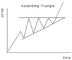 Ascending triangles are considered bullish chart pattern formations, though depending on whether they are formed during an up-trend or a down-trend they may have different implications regarding future price movement. Spotted within an up-trend an ascending triangle is typically considered an indication that the upwards trend will continue. Just the opposite, if an ascending triangle forms during a downwards trend it is considered an indication of a trend reversal. Essentially, ascending triangles are comprised of a series of candles that form the shape of a triangle. The term ascending triangle refers to the fact that the triangle's two trend lines are not created equally; the top line of the triangle will represent a fairly even level of high prices, while the lower level of the triangle will represent a continued series of higher lows.